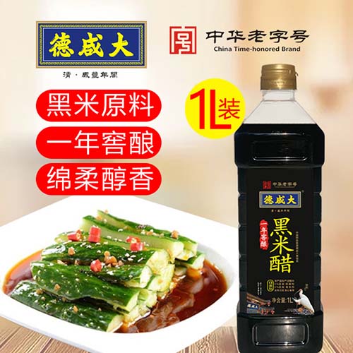 大咸德一年黑米醋,选用黑米原产地洋县黑米,用大咸德百年传承技艺固态发酵,经360天陈酿、露晒手工制成。醋体琥珀、醋味醇香,黑米特有的口感与营养相结合,既是调味珍品,更是馈赠亲友之尚品。