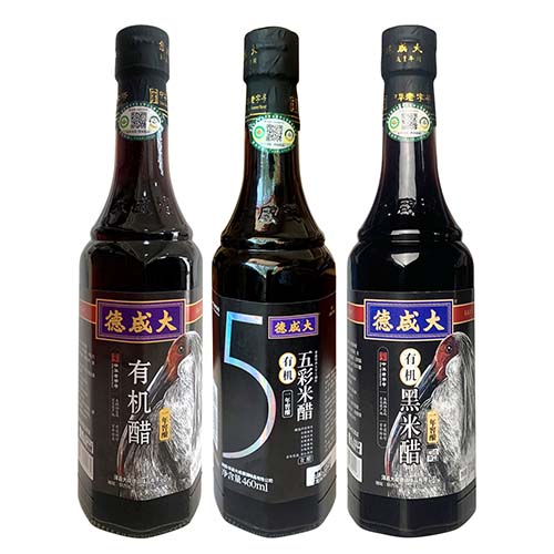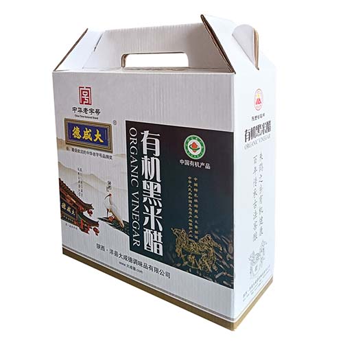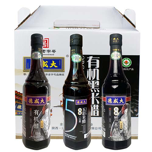 有机醋礼盒不仅仅是礼盒,更是有机调味品的代表。是调味品,更 是艺术品。非遗与有机的完美结合,传统技艺与现代标准碰撞出了调味 品界一颗璀璨的明星,生活不止黑与白,更有缤纷的五彩。 礼盒内涵盖了大咸德窖酿有机五彩米醋、窖酿有机黑米醋、窖酿有 机醋(三合一)。